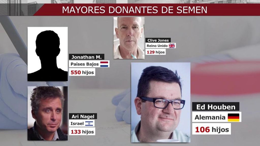 No es un caso aislado, Ari Nagel, al que llaman ‘Esperminator’ con película propia, es un israelí que ha engendrado con su esperma 133 hijos. En el Reino Unido, otro hombre, Clive Jones, también saltó a los medios por ser, en su día, el mayor donante de semen del mundo ya que hace un año 129 hijos y otros 9 en camino. Le sigue en el ranking, Ed Houben, un alemán con 106 hijos repartidos por todo el mundo.