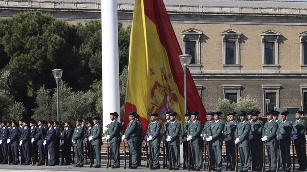 El izado de la bandera de España ha sido el primer acto de todos los que se realizaran hoy con motivo de la celebración del Día de las Fuerzas Armadas. El Jefe del Estado Mayor de la Defensa ha presidido este acto en la Plaza de Colón de Madrid en donde además del izado ha tenido lugar un pequeño desfile de la Compañía Mixta de Honores.