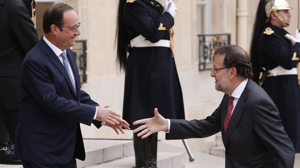 El presidente francés, François Hollande, ha recibido al presidente del Gobierno, Mariano Rajoy, en el palacio del Elíseo al inicio de la XXIV cumbre bilateral entre España y Francia, que se centra en las interconexiones energéticas y la colaboración en la lucha antiterrorista y contra el crimen organizado, en particular frente a la amenaza del yihadismo internacional.