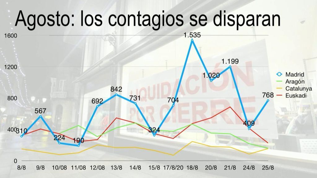 El Ministerio de Sanidad ha informado de 2.415 nuevos casos de COVID-19 en las últimas 24 horas, una subida de unos 400 casos con respecto a ayer (2.060). Además, el informe de este martes ha añadido 7.117 positivos a la cifra global, alcanzando un total de 412.553.