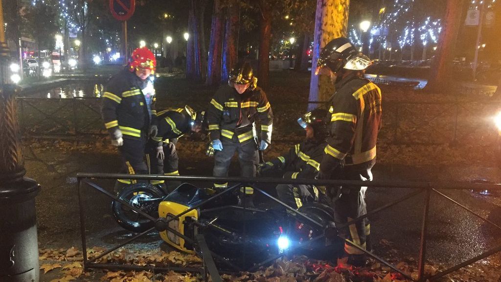 Un motorista, de 25 años, está muy grave tras sufrir un brutal accidente anoche en el Paseo del Prado, en Madrid. El conductor resbaló con el asfalto mojado y cayó debajo de un minibús que pasaba en aquel momento por la calle. El joven fue trasladado al hospital, donde se encuentra ingresado, con varios traumatismos craneoencefálicos severos y un posible traumatismo pélvico.