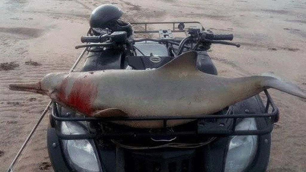 Indignación en la Red: mata a un delfín y lo pasea en quad por la playa