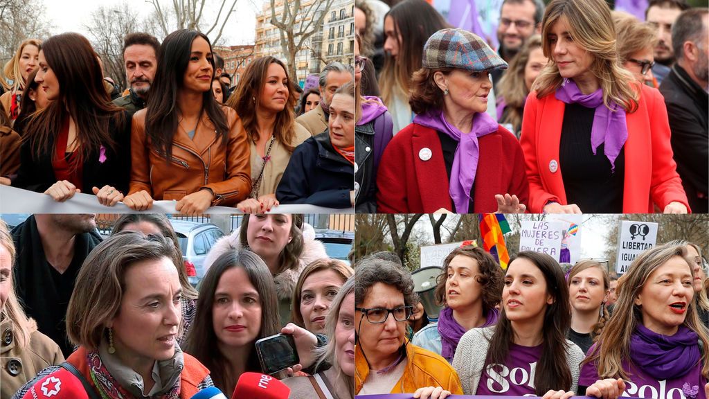 Primera manifestación del 8M del Gobierno de coalición y la han resuelto cada uno por su lado con sus ministras. Han venido casi todas las socialistas, pañuelo morado al cuello, con la vicepresidenta al frente. Del otro lado y a cierta distancia una de las dos ministras de Unidas Podemos, la titular de Igualdad.