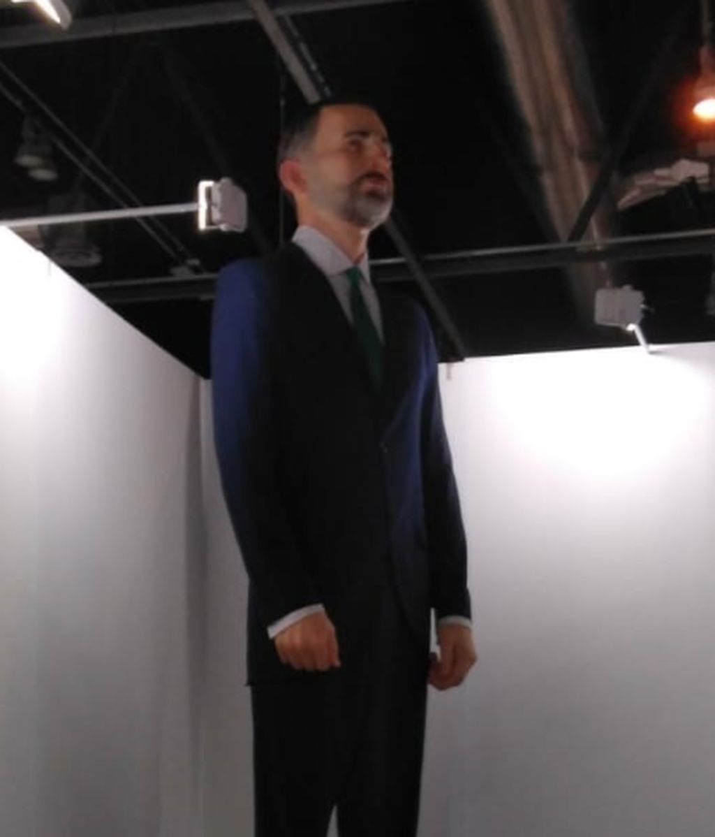 Santiago Sierra fue el protagonista de la anterior edición de ARCO por su obra 'Presos políticos', que fue retirada del 'stand' de Helga de Alvear. El precio de 'Ninot' es de 200.000 euros y la figura está perfumada con la fragancia 'Dark blue' de Hugo Boss "porque es el perfume que usa el monarca". La escultura está hecha de cera y alcanza una altura de cuatro metros, lo que le hace sobresalir del 'stand' de la galería albergada en el pabellón 9 de Ifema.
