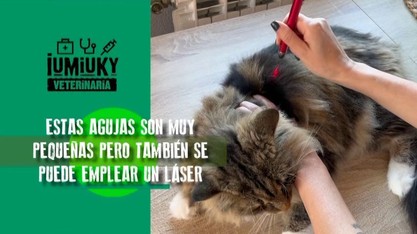 ¿Cómo se realiza la acupuntura en animales? Las agujas de acupuntura que se emplean en fisioterapia animal son muy pequeñas y nos suelen producir ninguna molestia. Si tu mascota es muy miedosa o sensible, en vez de las agujas se puede recurrir a estimular los puntos de acupuntura con una luz laser.
