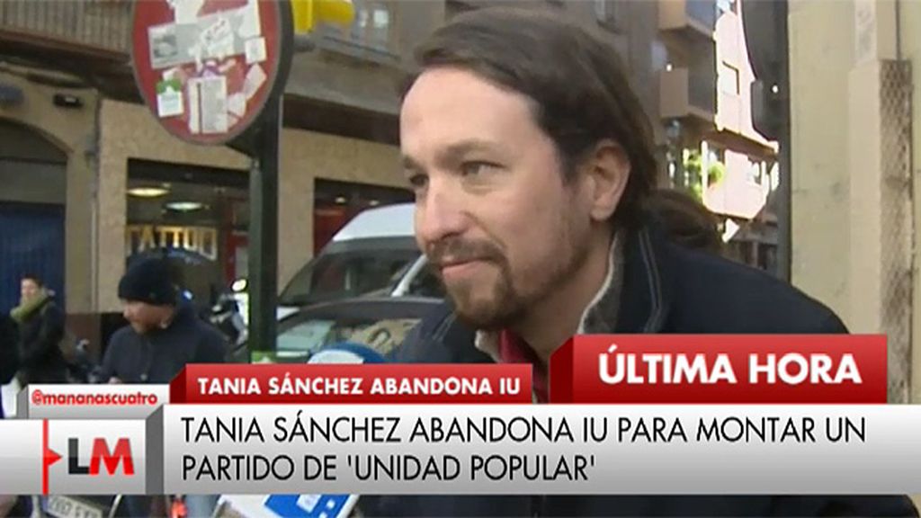 Tania Sánchez abandona Izquierda Unida para montar un partido de unidad popular y Pablo Iglesias respondía a las preguntas de la prensa: "Podemos cuenta con mecanismos suficientes para que podamos tender la mano a muchos sectores que apuestan por el cambio político. Como siempre, máximo respeto hacia todas las personas que en otras organizaciones toman sus propias decisiones que a nosotros no nos corresponde valorar".