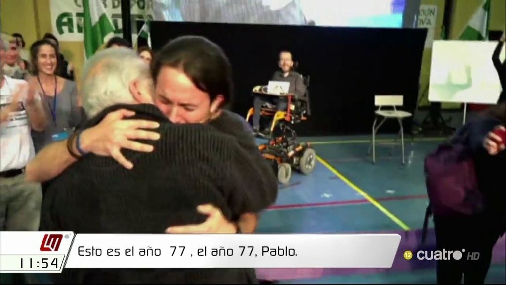 Pablo Iglesias y Pablo Echenique participaban en un acto en Córdoba cuando el secretario general de Podemos advertía la presencia de Julio Anguita. Ambos se abrazaban y Pablo Iglesias se emocionaba. “Desde aquí hago un llamamiento a esos movimientos sociales, ahora o nunca, ahora o nunca”, decía Anguita.