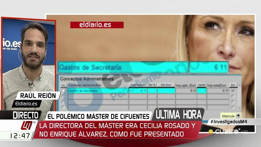 Enrique Álvarez, el catedrático que fue presentado el pasado miércoles como director del máster de Cifuentes, no lo fue en el curso en el que se matriculó la presidenta. Según la web de la universidad, al frente de ese máster estaba otra profesora. Además, el registro de secretaría confirmaría que Cifuentes no aprobó en 2012.