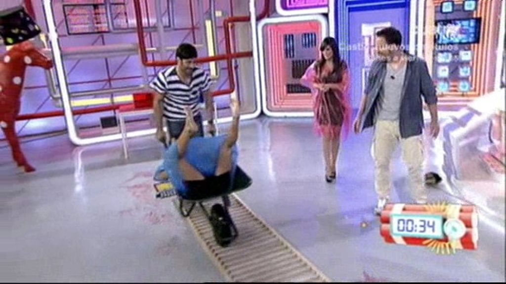 El humorista y la presentadora caen en el 'culo veo, culo quiero' y tendrán que competir para evitar la bañera.