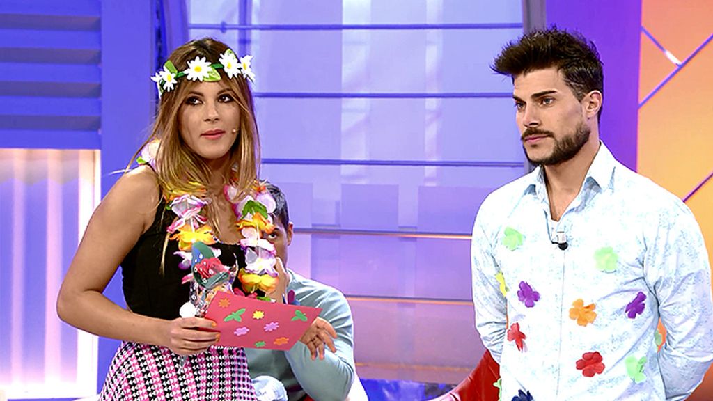 Sin palabras se ha quedado el plató entero cuando Toño ha entrado convertido en primavera y moviendo las caderas al ritmo de una música muy relajante. El pretendiente ha intentado darlo todo, a pesar de tener mal la rodilla y parece que a Alba le ha gustado mucho. Toño se ha pegado un montón de flores en la camisa, se ha puesto unos pantaloncitos de un verde imposible y ha escrito una nota para Alba con el único deseo de que le sacara de la silla caliente, pero no lo ha conseguido.