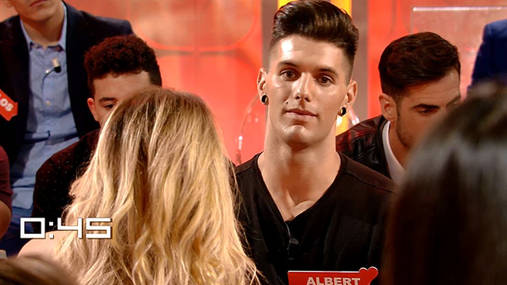 Muy nervioso y con sabiendo que sus pendientes no le iban a gustar nada a la tronista, Albert se ha enfrentado a su cita express con mucha sinceridad. Tiene 22 años, vive muy cerquita de Suso, desde pequeño se ha dedicado al fútbol y a las motos. Es mecánico y ha estado todo el verano trabajando de camarero. Hace tan solo unos meses que terminó su última relación y estaba dispuesto a quitarse las dilataciones de las orejas para conocer a Ana Anginas. Sin embargo, a la tronista no le ha llegado a transmitir nada su mensaje y no le ha invitado a sentarse de pretendiente.