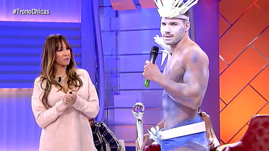 Ha bajado un poco helado pero en su salsa, "con los músculos pintados", ha asegurado el pretendiente de Samira. Y es que como nos tiene acostumbrados en todos los retos que hace, Alejandro se mete muchísimo en el papel y hoy no iba a ser menos. Con lentillas azules, pintado de azul, un minúsculo slip... ha dejado a todos impresionados.