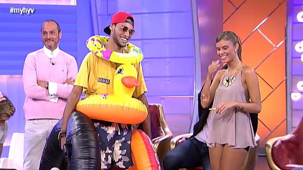 El pretendiente se ha cubierto el cuerpo de flotadores y ha bajado las escaleras con mucho ritmo. Sua ha explicado que venía disfrazado del chico que vende flotadores en la playa y a la mayoría les ha parecido muy gracioso. Nacho no daba crédito y no ha tenido más remedio que ponerle otro cero y aprovechar para cambiar de opinión y subir la nota de Daniel a un ocho. Sua no sabía que responderle y María le ha sugerido que le cantara una canción de ruiditos de los que él hace.