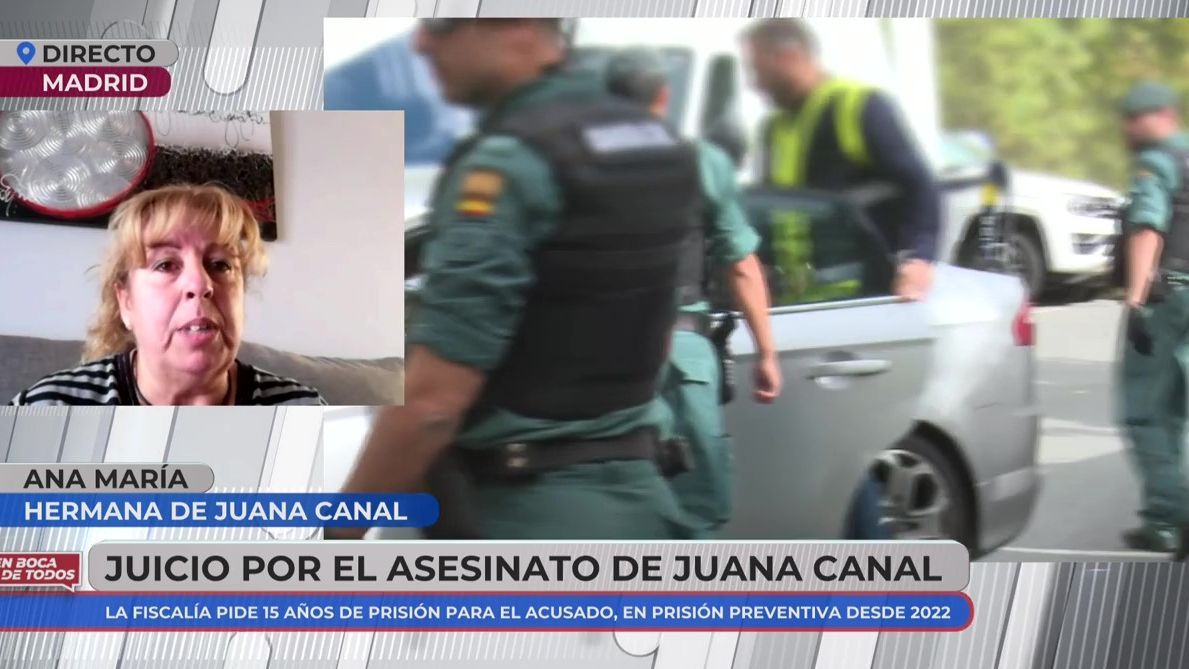 Ana María, después de que el único acusado se haya declarado inocente, ha querido dejar claro: "Es un mentiroso y un asesino". Tras esto, la hermana de Juana Canal señalaba, los motivos por los que cree que mató a su hermana: "Creo que es evidente que hubo una pelea y dinero de por medio, como móvil de la discusión. Es un asesino, así que no pienso que necesite más motivos para matar".