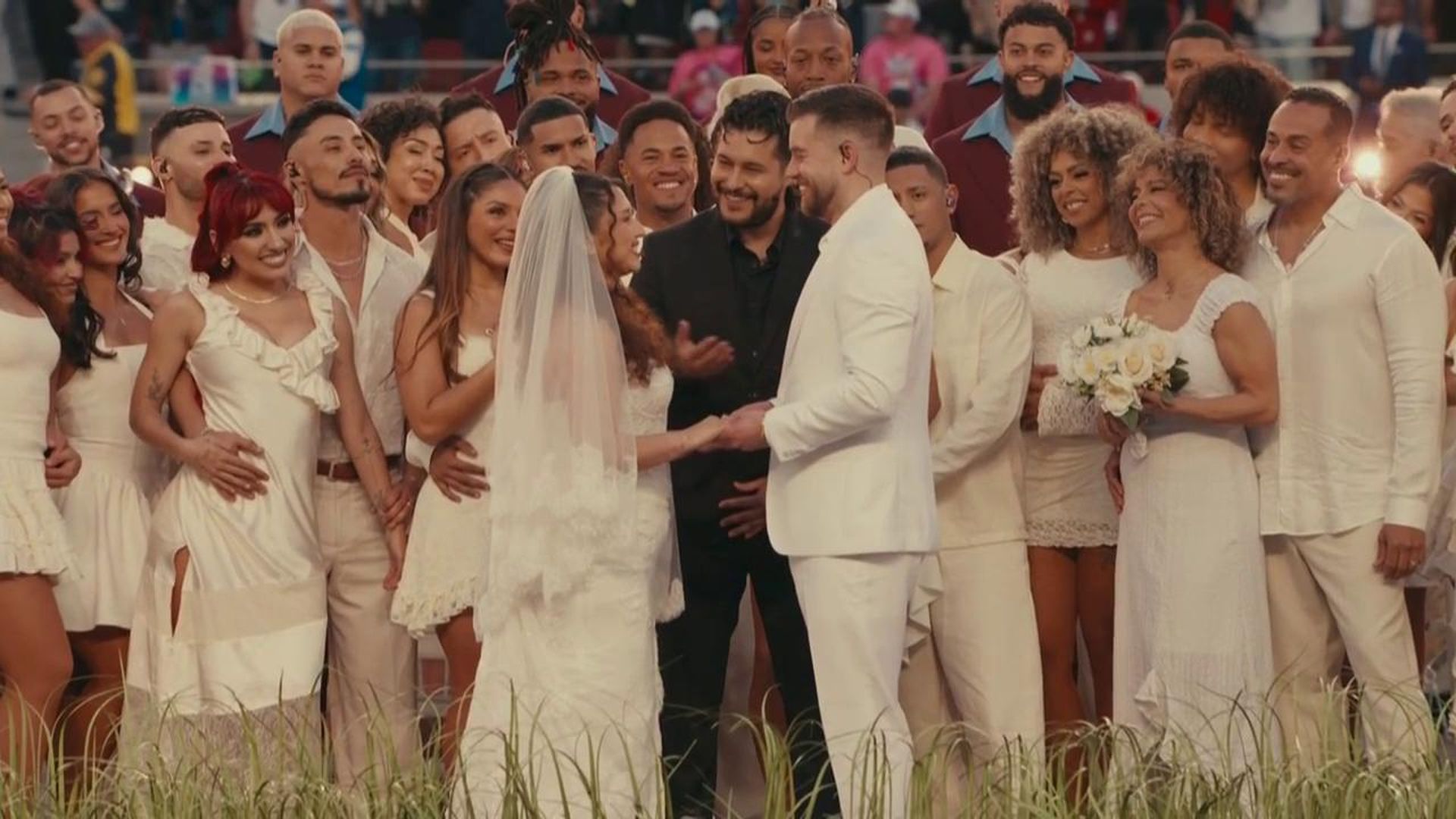 Eleisa “Elli” Aparicio y Thomas “Tommy” Wolter son los novios. Ambos son sanitarios y de origen estadounidense. Habían invitado a Bad Bunny a su boda, y el artista, en vez de asistir, los invitó a casarse en su show, fue testigo y firmó el acta de matrimonio.