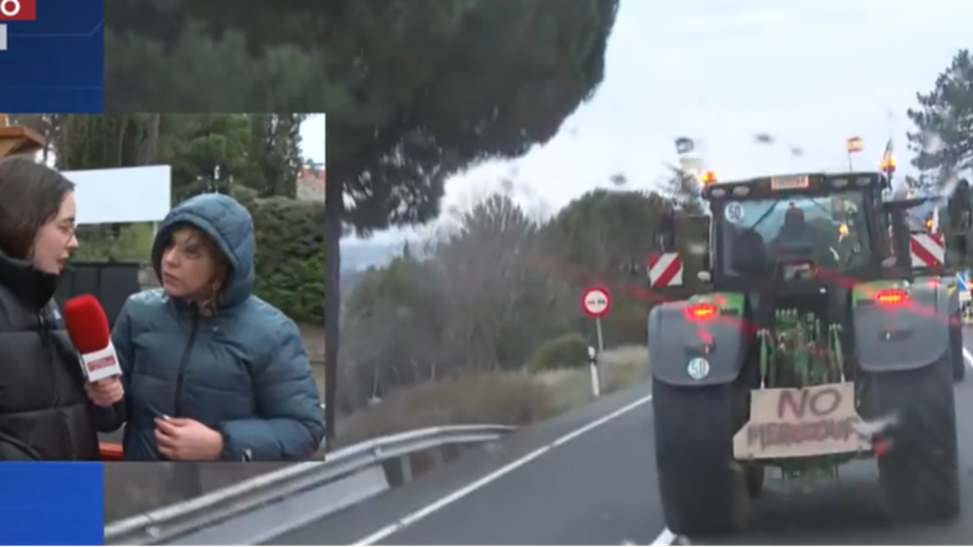 'En boca de todos' acompaña a los agricultores. Tatiana, reportera del programa, se encuentra en un tractor acompañándolos: “Nosotros estamos en una cola de tractores, son unos 190. Han partido desde El Espinar hasta Colón. El mensaje es claro: ‘Europa nos vende, el campo se defiende’. Están hartos”.