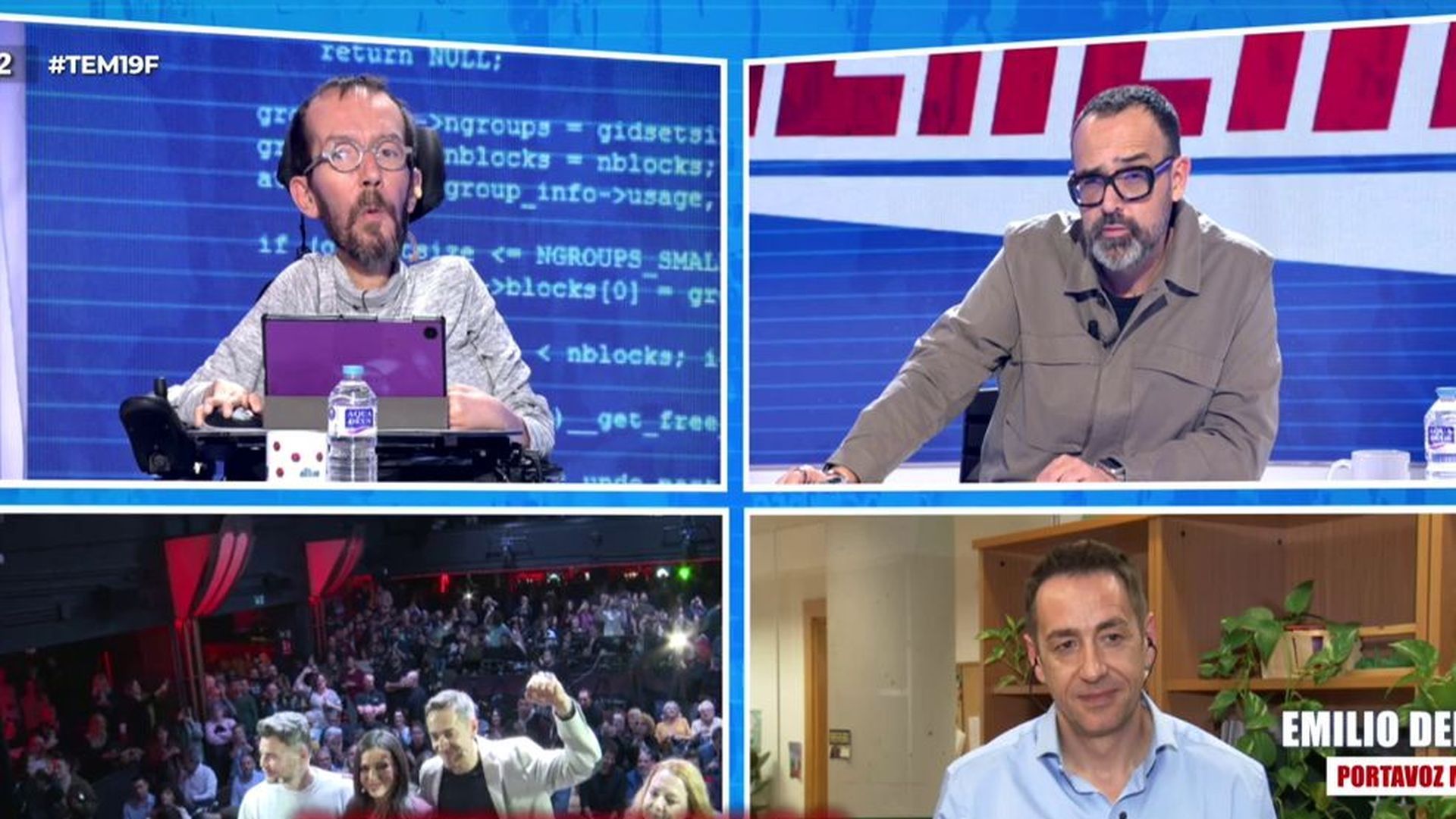La ausencia de algunos líderes, como Mónica García que, según explicó, tenía otro compromiso, o de Yolanda Díaz, fue objeto de debate en el plató. Delgado restó importancia a esas ausencias y afirmó sentirse “muy contento y satisfecho” por la participación lograda. También se aludió a declaraciones de dirigentes de Esquerra Republicana de Catalunya, como Oriol Junqueras, que marcaron distancias respecto al acto, enmarcándolo en opiniones personales.