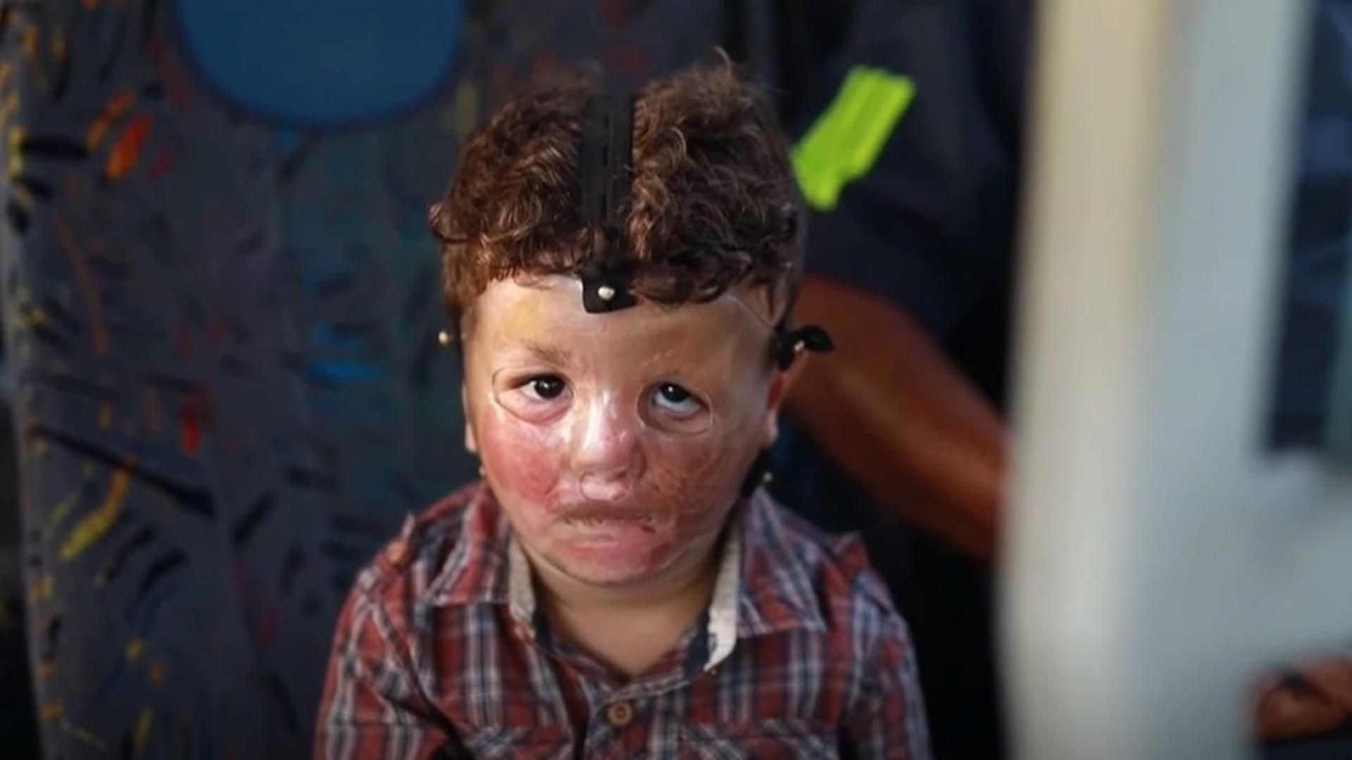 “Siempre le gustó jugar y se ríe con cualquiera en la calle que intente jugar con él o sonreírle. Pero la lesión destruyó muchas cosas de su infancia, especialmente porque tiene que usar una máscara 3D”, explica Ahmed Saleh, madre de Sanad.