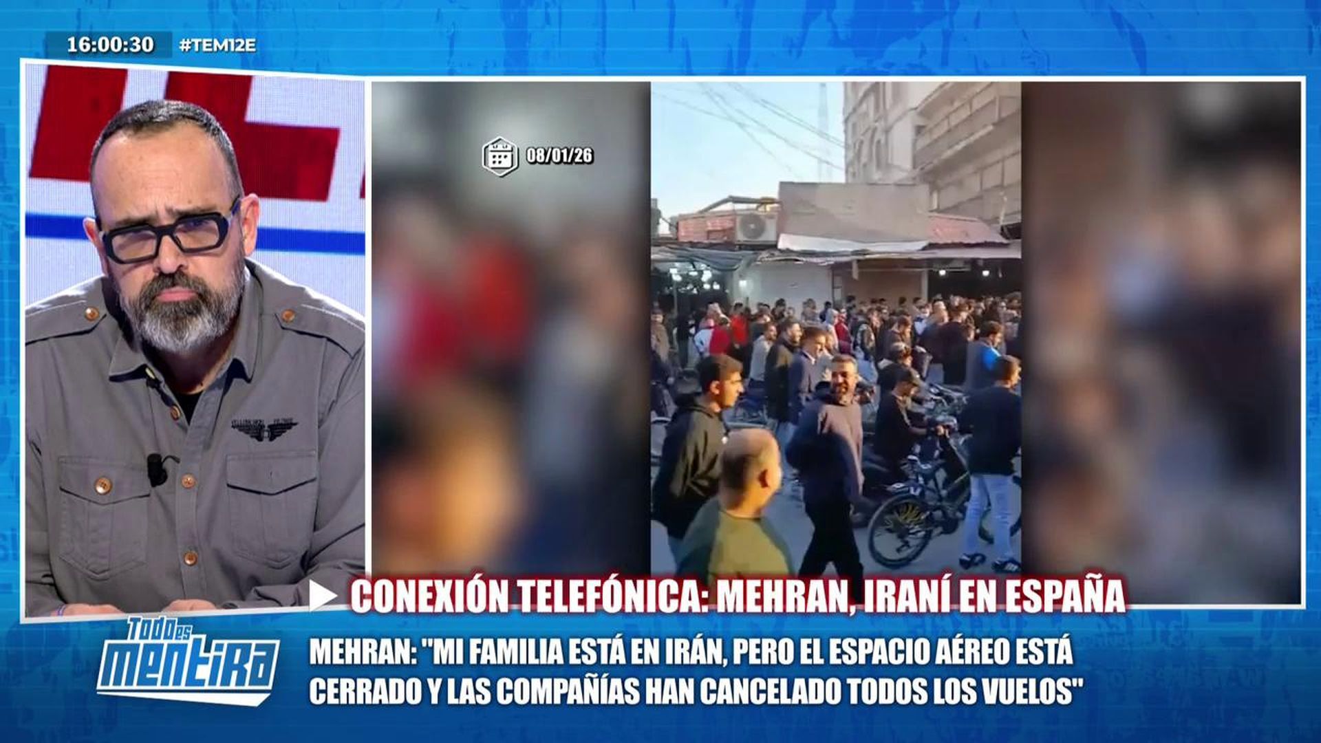 Las protestas en Irán continúan y en 'Todo es mentira' reciben el testimonio de Meheran, un iraní en España que lleva cuatro días sin poder comunicarse con su familia para saber cómo se encuentran.