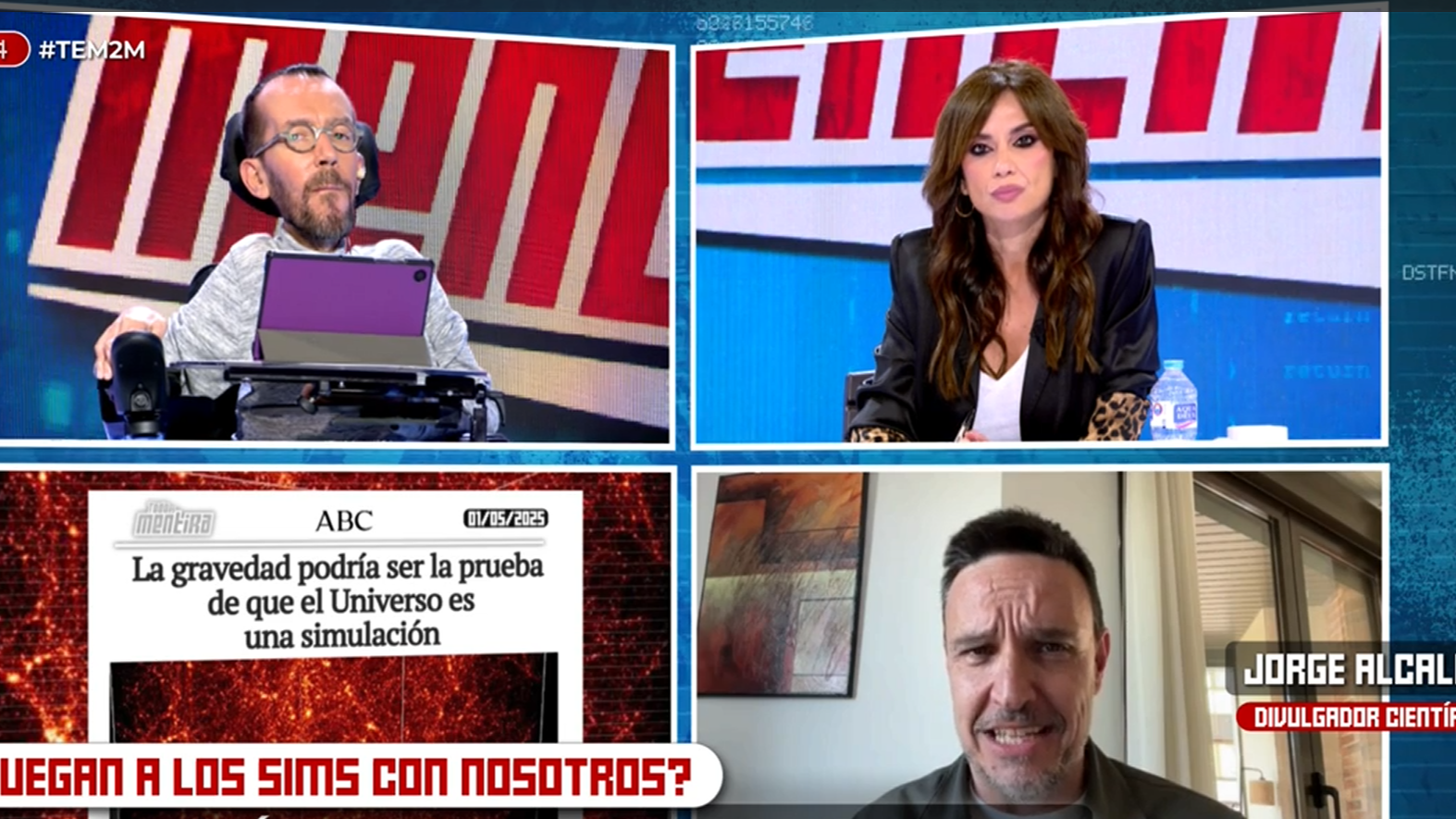 Marta Flich ha querido saber si la gente sería consciente en caso de vivir en una simulación, y Jorge Alcalde lo ha explicado: ''Eso también es fascinante, si lo pensamos, ya estamos jugando con una simulación. Todos nuestros espectadores no me están viendo a mí, están viendo una versión mía que procede de una cámara que ha cogido la información de mi cara, la ha traducido en ceros y unos en código informático, pasa por un cable y llega al televisor y produce una imagen que no soy yo, es una versión de mi digitalizada''.