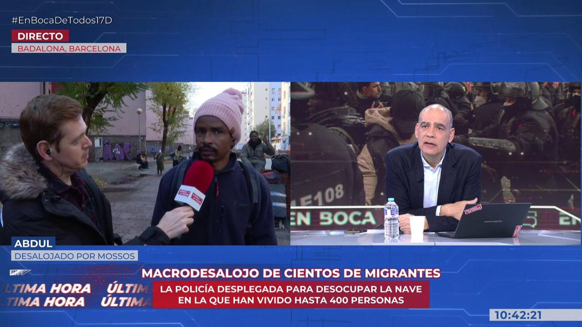 En directo desde el barrio de Remei, Jordi Julià nos ha dado la última hora del macrodesalojo, en el que las 20 últimas personas que estaban dentro acababan de salir del instituto. Algunas estaban registrándose en una mesa que han habilitado en la calle para saber dónde las van a reubicar. Unas 400 personas se quedan en la calle sin ningún tipo de alternativa habitacional.