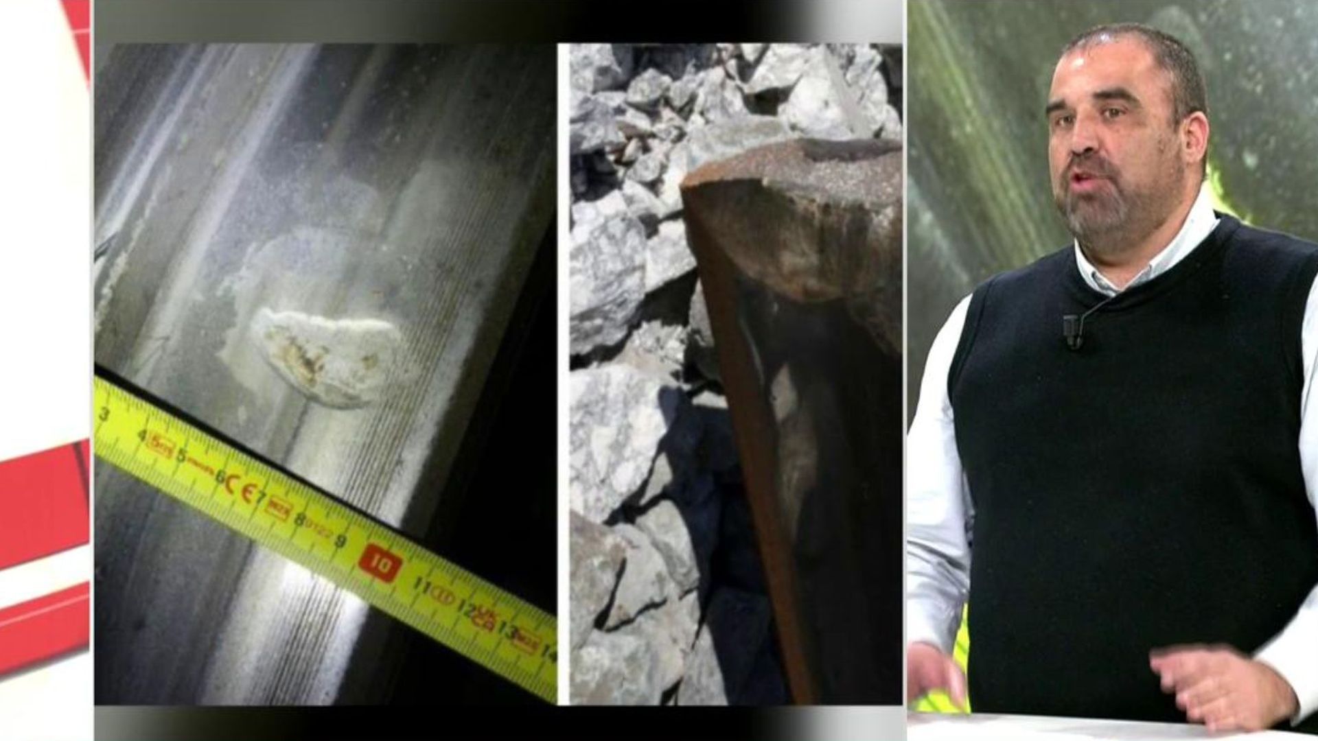 Lo que dicen los especialistas es que la rotura de esa parte provoca un escalón. Ese escalón deja un impacto en la rueda que es la marca que estamos viendo a la izquierda. Esa marca se va incrementando y haciendo más grande hasta que llega al coche cinco, que es el último antes de que se produzca el descarrilamiento.