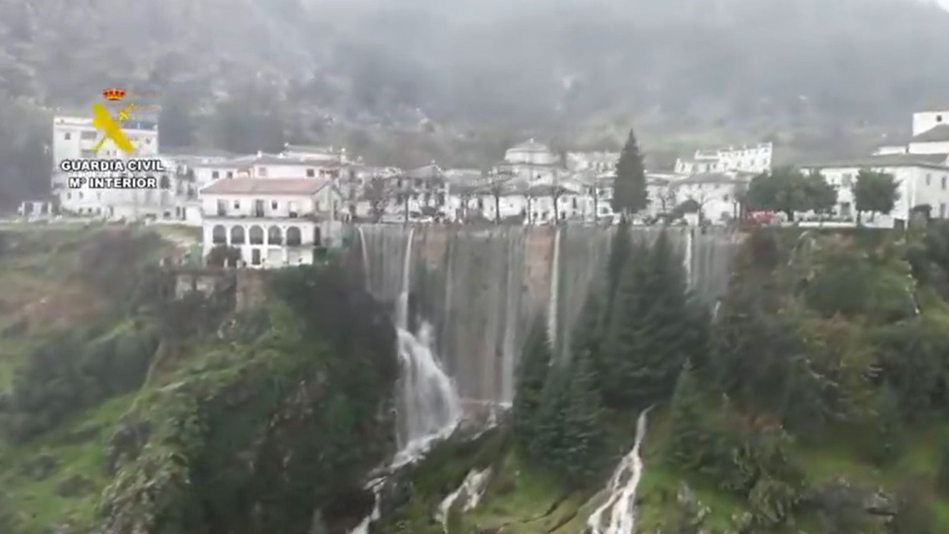 Grazalema vista desde el aire se ve como un pueblo pegado a una cascada. Los acuíferos del subsuelo no pueden alojar más agua y eso provoca corriemientos de tierras. Es una de las razones por las cuales desalojan la localidad. A primera hora de la tarde se notificaba la evacuación. Y casi inmediatamente comenzaba a hacerse efectiva. Las autoridades hacen lo que pueden para agilizarlo. Sacando a vecinos en brazos, mascotas en lanchas, o controlando el tráfico. Son 1.600 vecinos dejando atrás sus casas