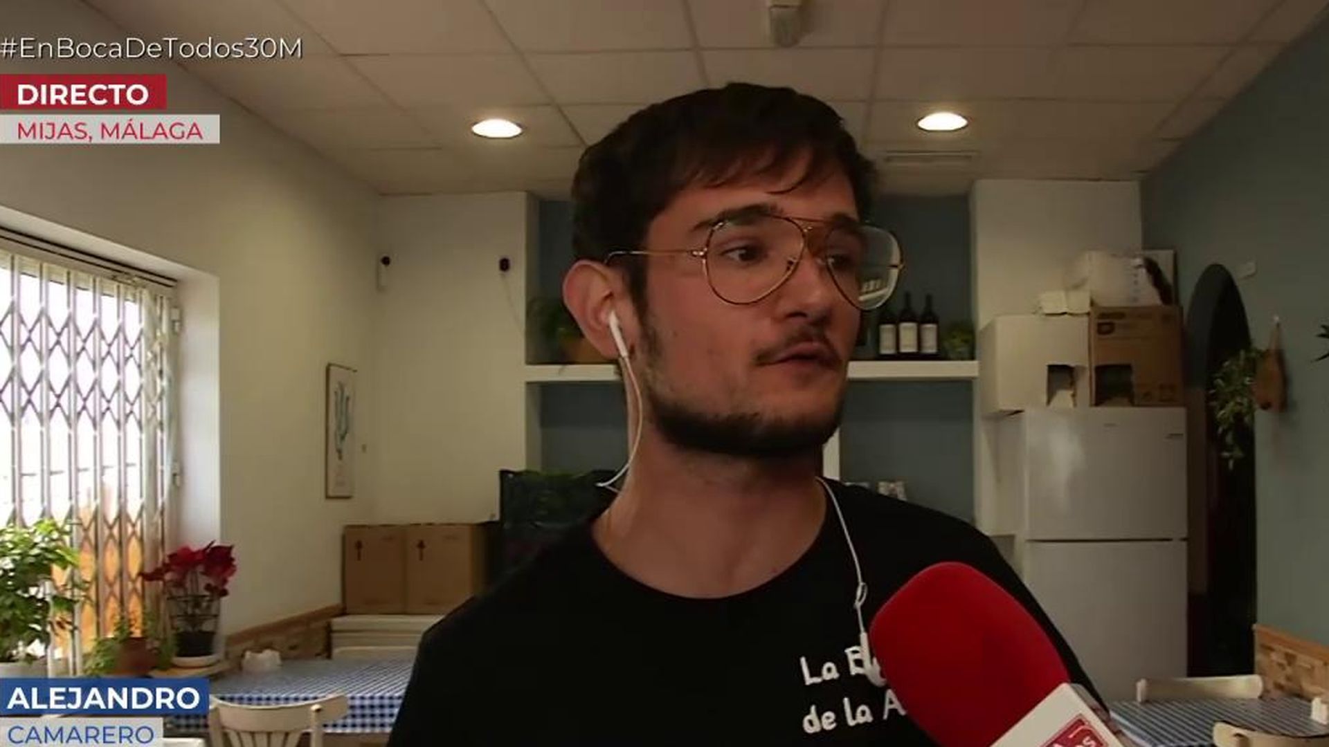 Ana Gómez, reportera de ‘En boca de todos’ se ha desplazado hasta el establecimiento, en el que el camarero le ha reconocido que, hasta hacía unos días, seguía pensando que alguien le había gastado una broma: “Una vecina me dijo que la Guardia Civil estaba buscando un muchacho con un casco y un machete”. Alejandro, el camarero, era consciente de que el machete era de verdad, pero pensó que era todo una broma.