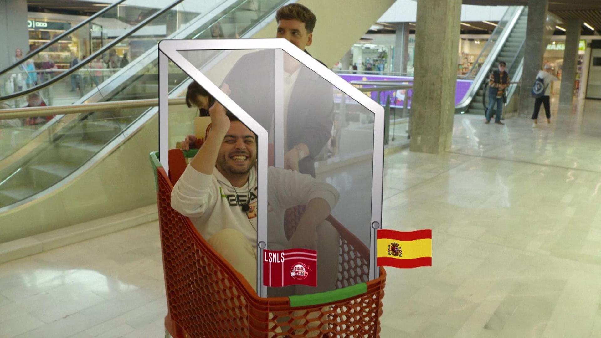 En ese momento, a Xuso Jones se le ocurría que el nuevo concursante participara en 'Lo sabe, no lo sabe' subido a un carro de la compra durante todo el programa: "Como estamos en un centro comercial, yo te voy a ir llevando por los pasillos y vas eligiendo a los viandantes que quieres que contesten las preguntas".