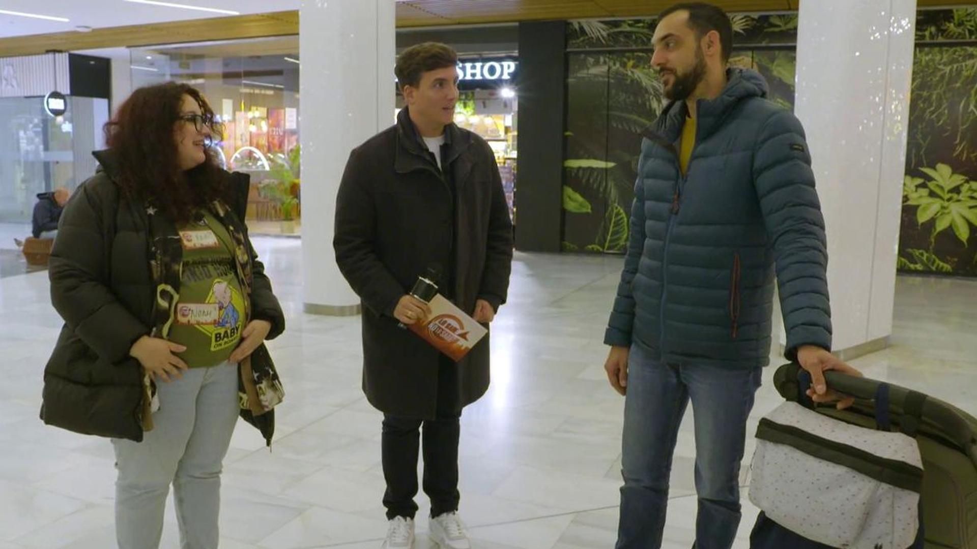 Esta vez, el presentador se encuentra en un centro comercial, donde se ha dirigido hacia una mujer embarazada. Ana tiene 33 años, es administrativa y entre risas comenta que “voy con regalo” mientras le enseña su camiseta de Tokio Hotel.