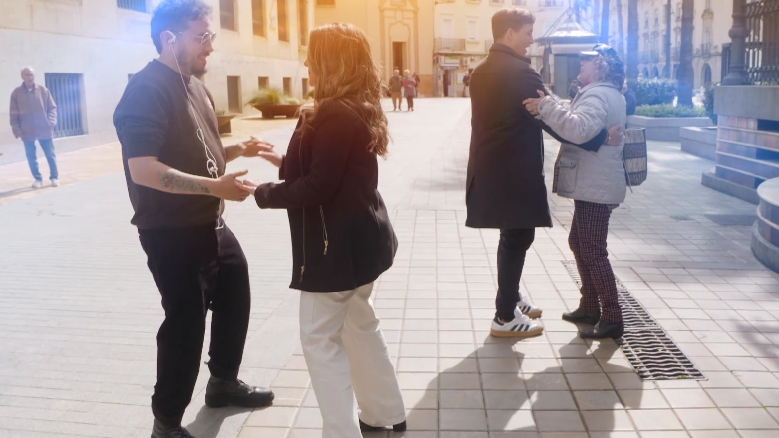 Sin previo aviso y al escuchar la música, una señora que pasaba por allí ha sacado a bailar a Xuso Jones y mientras que movían las caderas le ha hecho un interrogatorio “Tú, ¿De dónde eres?”. Al saber que el presentador era de Murcia, la señora se ha venido arriba y le ha contado que su padre pertenecía a la Patrulla Águila.