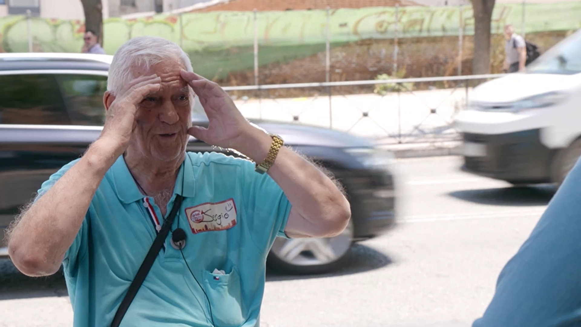 En el nuevo programa de ‘Lo sabe, no lo sabe’, Xuso Jones ha viajado hasta el barrio de Carabanchel para buscar a un transeúnte que le sorprenda lo suficiente como para convertirle en el primer concursante de la tarde. Sin embargo, esta vez lo hace de una manera muy especial, el presentador va caracterizado de ‘Manolito Gafotas’ y su elegido es Sergio Montenegro, un jubilado de 92 años.