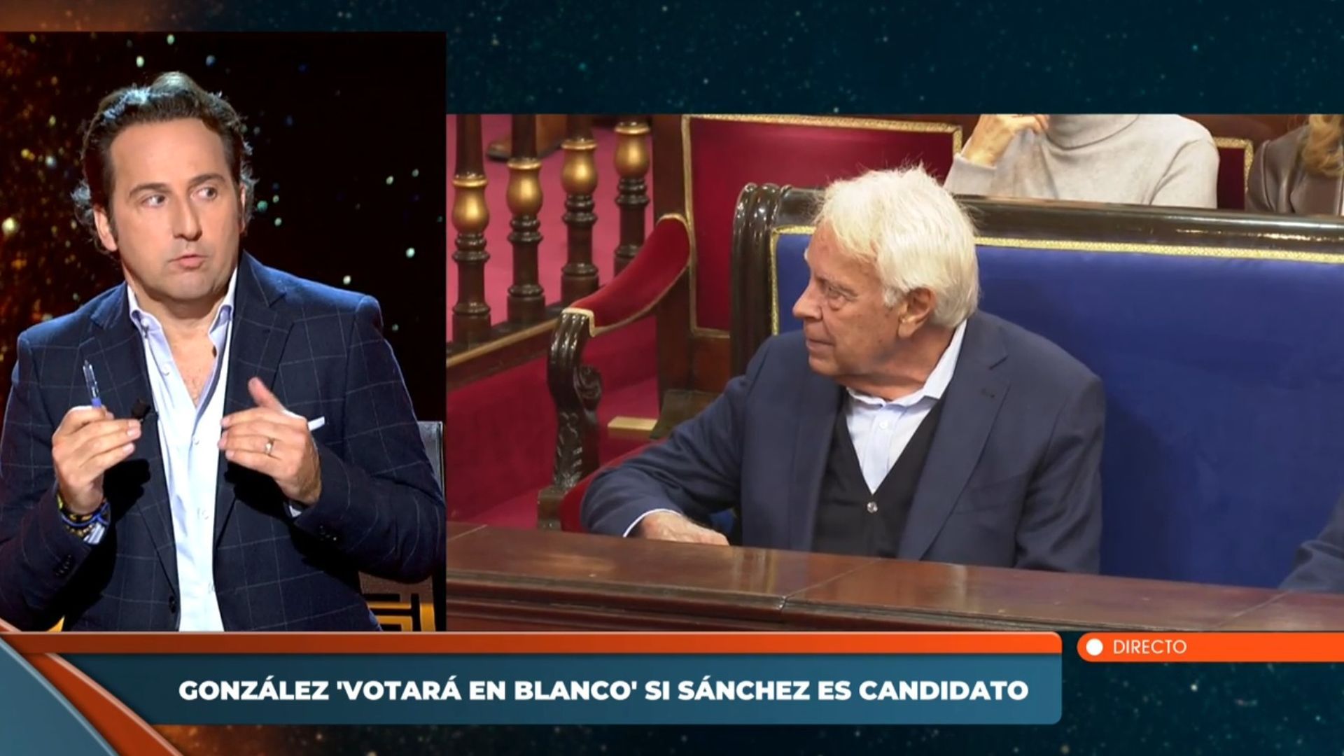 "Miren que he visto yo y he escuchado yo muchas declaraciones de políticos, pero pocas con la contundencia con lo que está generando ya el mítico Felipe González", ha indicado el presentador de 'Horizonte'. Además, mirando a Carmen Porter, ha aseverado lo siguiente: "Al que invitamos a este programa, por cierto".