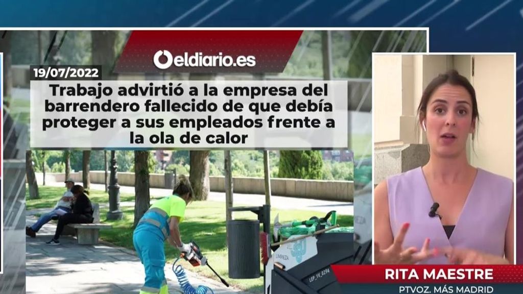 El Ministerio de Trabajo advirtió al Ayuntamiento de Madrid de que debía mejorar las condiciones de los trabajadores de la limpieza, frente a la ola de calor. Sobre la veracidad de esto, Rita Maestre tiene claro que “desde luego debía saberlo, creo que se ha hecho el longuis, como en el resto de la gestión de este asunto”.
