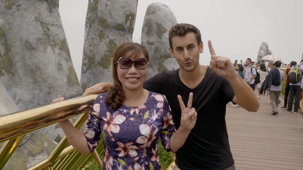 ‘Viajeros Cuatro viaja hasta Vietnam para visitar, entre otros reclamos turísticos, el Golden Bridge (Puente dorado) que se encuentra en Da Nang. 150 metros de puente que se construyeron en menos de un año, fue el más fotografiado y subido en Instagram en el año 2018. Pero si hay algo más curioso que esto es lo que sucede cuando un occidental visita este puente… ¡Se convierte en el foco de atención de los vietnamitas y coreanos! ¡Todo el mundo quiere una foto con nuestro guía Adrián Diéz!