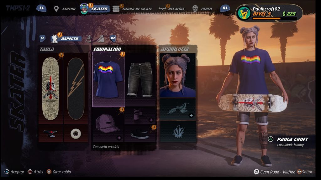 El apartado en el que más se puede apreciar el cambio es en el de la personalización de nuestro avatar y la edición de parques. Tenemos a nuestra disposición un buen número de skaters famosos, pero lo realmente interesante es crear nuestro propio personaje para jugar con él o ella en cualquier modo disponible. Podemos modificar tanto su apariencia como su equipación (camiseta, pantalones, gorra, calcetines y zapatos) y, por supuesto, su tabla de skate. Además, para añadir una capa de profundidad adicional, también se pueden retocar diversas estadísticas como salto, giro, equilibrio, velocidad y dominio en el aire, entre otros.