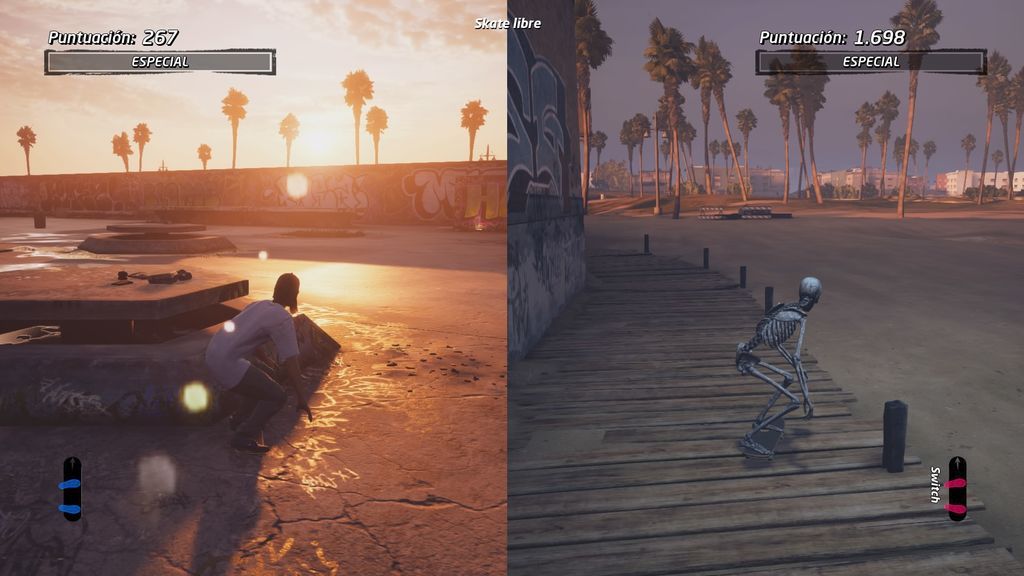 El modo multijugador del título nos propone jugar con un amigo u otros jugadores tanto en local a pantalla partida como a través de Internet en un sistema online que necesita unos cuantos ajustes para terminar ir bien y estar a la altura del resto de modos. Para empezar, en el multi local podemos seleccionar diversos modos como Skate libre, Desafío de puntos, Burro o Grafitis, además de retocar el tiempo límite y seleccionar el mapa en el que queremos jugar. En líneas generales funciona bastante bien, aunque sí es cierto que hemos experimentado algunas caídas de frames y otros problemas menores.